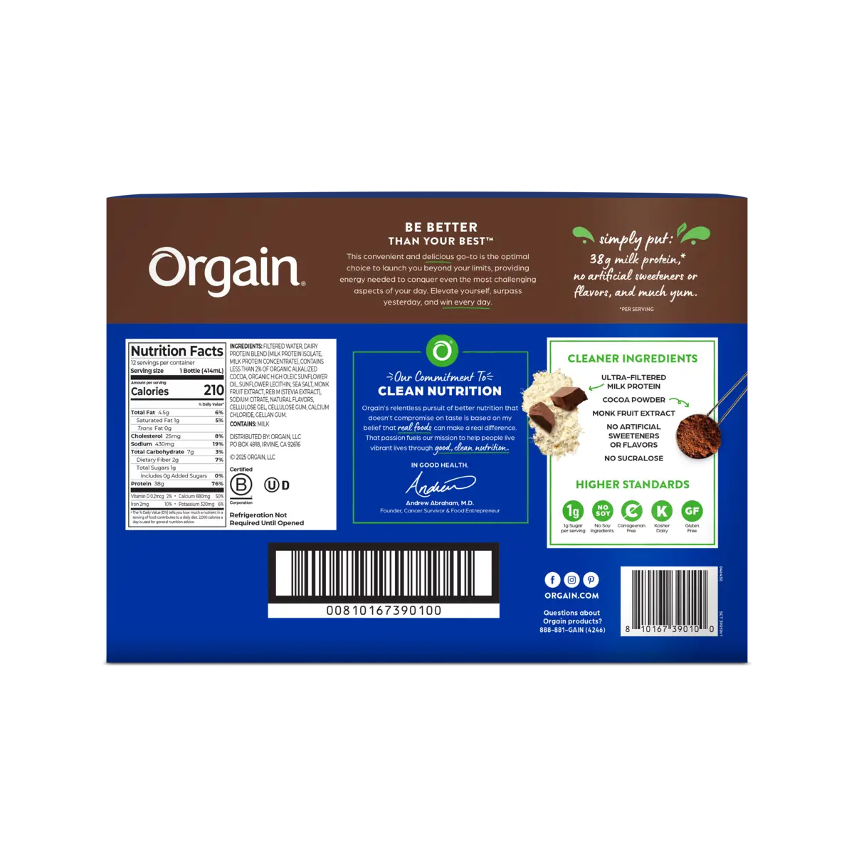 And because it¡¯s Orgain, you know it¡¯s held to the highest standards. That means no carrageenan, added hormones+ or artificial sweeteners or flavors ¡ª just delicious protein-powered nutrition you can trust. Crafted for a deliciously decadent taste experience and packed with protein from high-quality sources, this shake makes it easier than ever to hit your daily protein goals without having to eat non-stop.