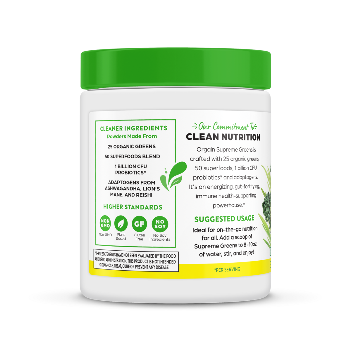 Want to know something even more supreme? Each serving of Orgain¡¯s Lemon Twist Organic Supreme Greens superfood powder has 1.5 servings of fruit & veggies+! A bonus and easy way to add extra good, clean nutrition to your daily routine. This organic blend of super foods provides an excellent source of Vitamin C for immune support ++. No question that this is Supreme nutrition made super simple. Go ahead, scoop up with the powder that's a treat for both your taste buds and your body so you can have energy to keep on going!